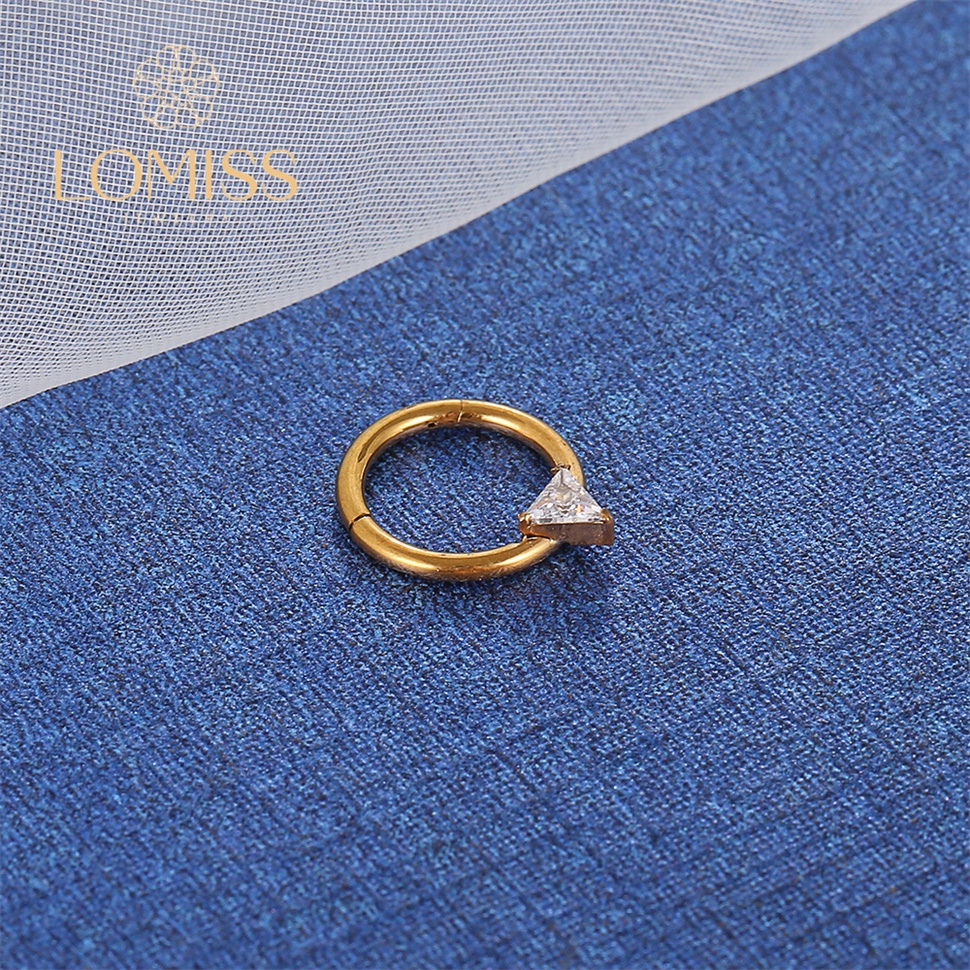 Piercing daith banhado PVD gold 18k titânio G23 segmento articulado uma zircônia triângulo《Lomiss piercing》