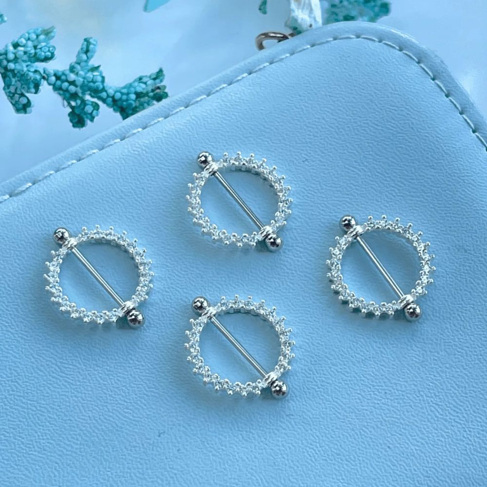 Piercing de coração-circulo mamilo cravejado Prata/Dourado