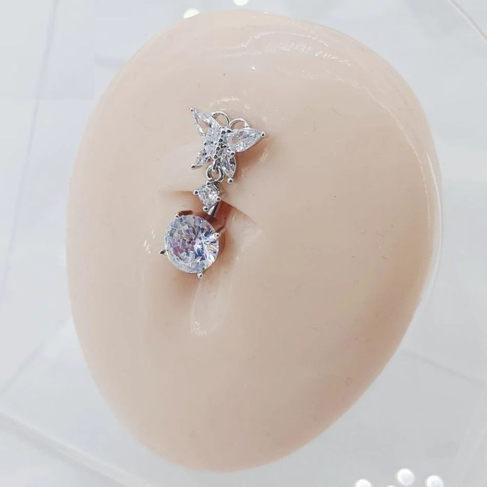 Piercing de Umbigo Borboleta Com Pingente em Zirconia Zircão.
