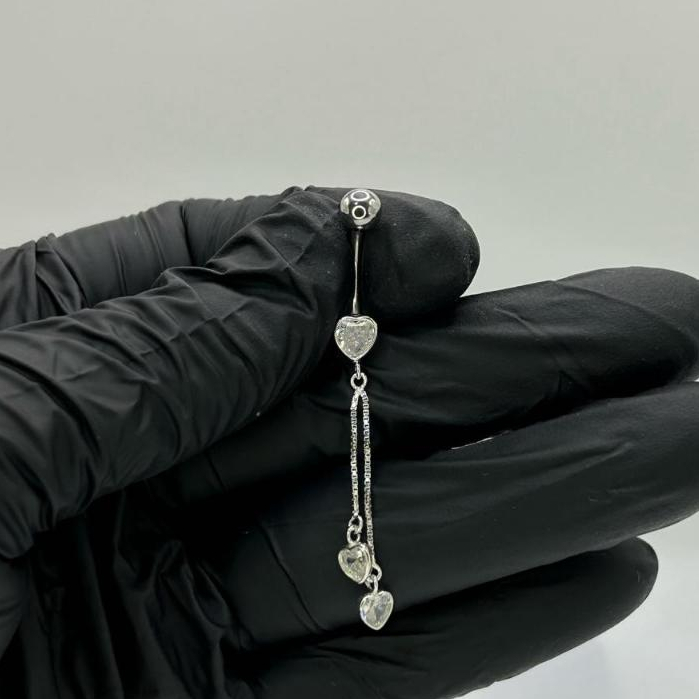 Piercing de Umbigo Coração Prata 925 Legitíma com Correntes e Pingentes Zircônia Delicado Luxo