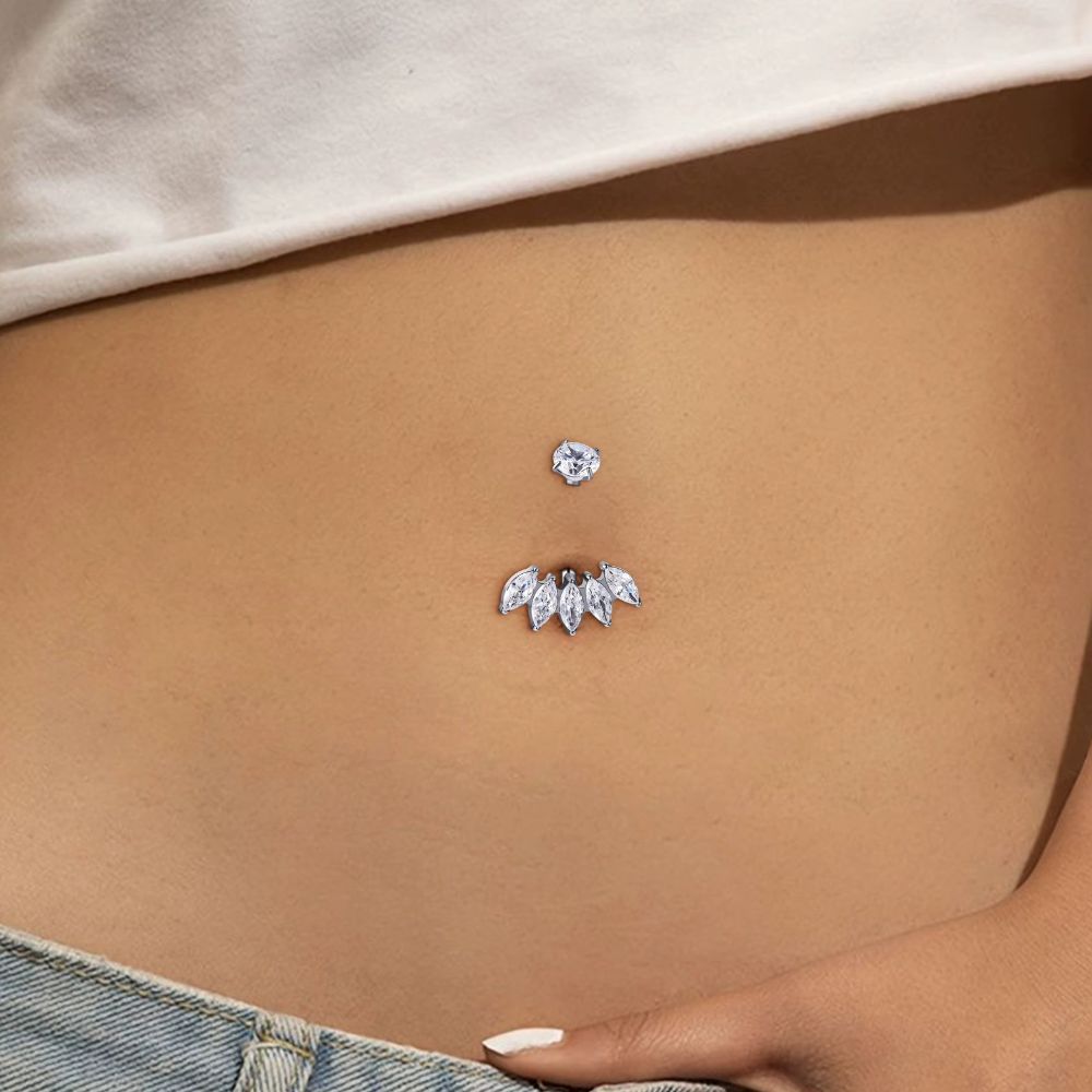 Piercing de Umbigo Coroa 5 Pedras de Zircônia-Prata