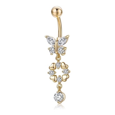 Piercing De Umbigo Pendurado Dourado Ou Prata Zirconia