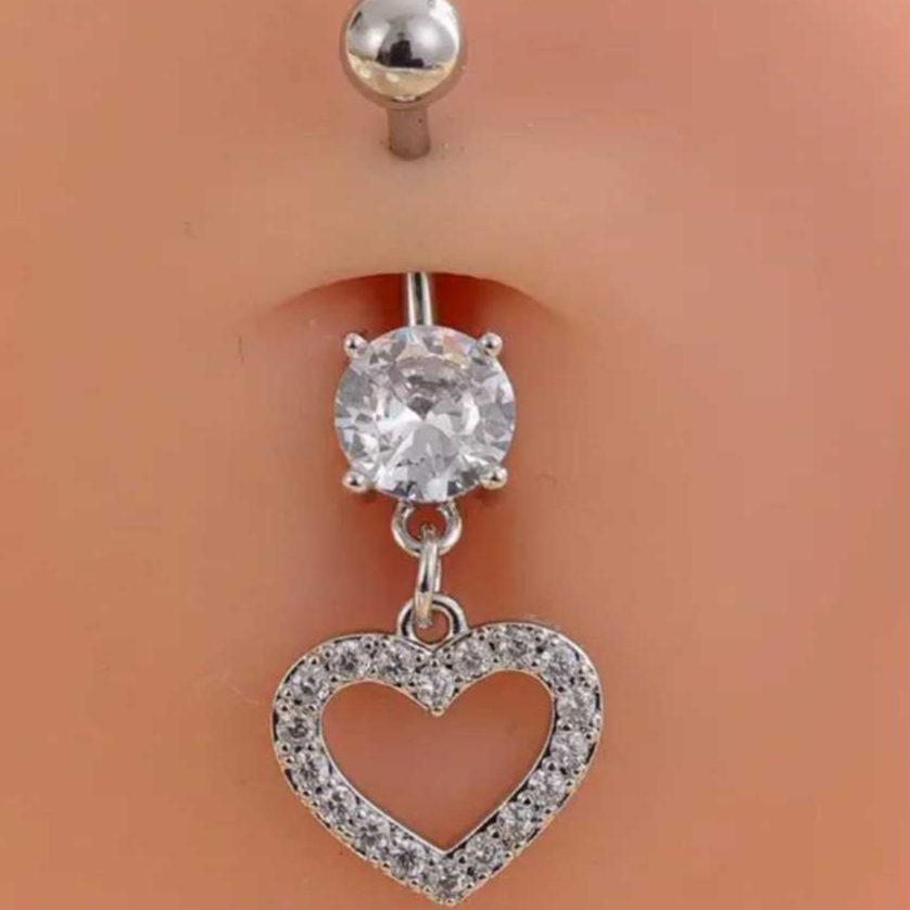 Piercing de Umbigo pingente Coração Prata/Dourado