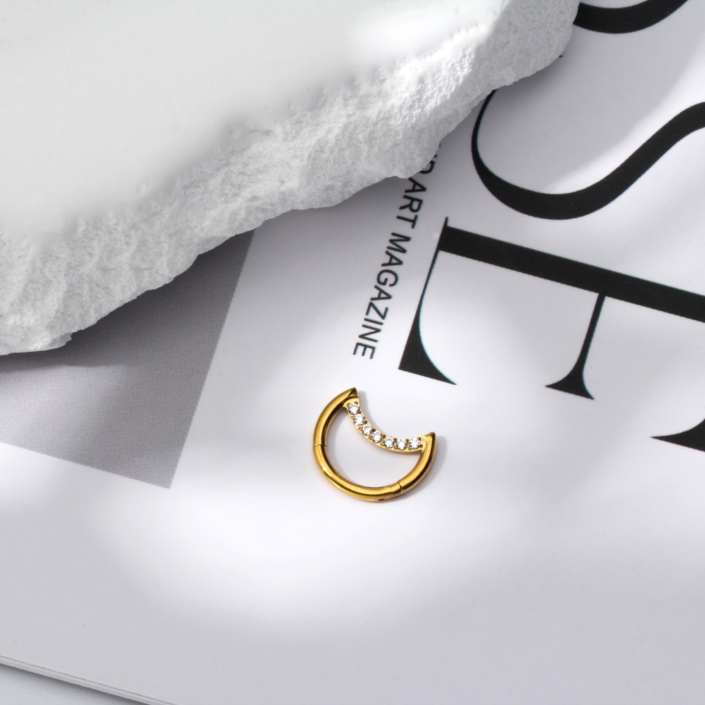 Piercing Diath rook septo Aço Cirúrgico CLIK Lua Zircônia Cravejada