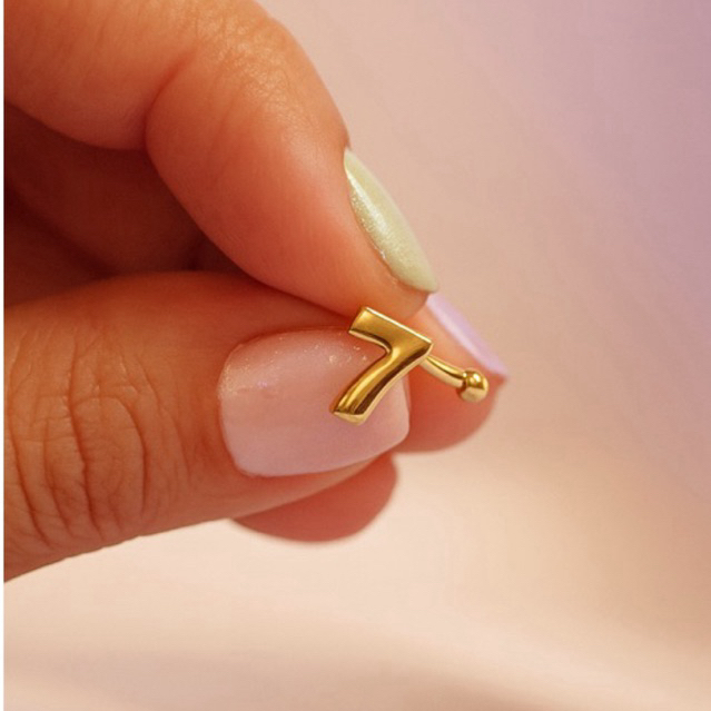 Piercing Fake Seven | Fanmade BTS Army Kpop| Número 7 | Banho Dourado ou Prateado | Hipoalergênico