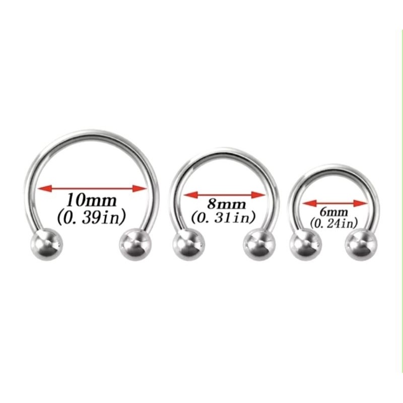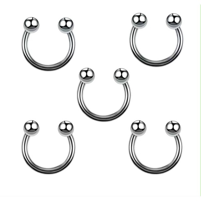 Piercing Ferradura para Orelha, Boca e Septo em Aço Cirúrgico na cor Prata ANÚNCIO REFERENTE A 1 UNIDADE Escolha pelo tamanho: 12mm, 10mm, 8mm, 6mm - Material: Aço Cirúrgico L316 - Espessura da haste: 1.2mm - Tamanho das bolinhas: 3mm Produto com excelente qualidade, confeccionado em aço cirúrgico antialérgico, proporcionando maior durabilidade * POSTAGEM IMEDIATA * Cuidados com as Peças POR FAVOR, LEIA COM ATENÇÃO : Para garantir a qualidade de nossos produtos, informamos abaixo alguns cuidados que devem ser seguidos para melhor conservação de suas peças (piercings, alargadores e acessórios): Peças que contenham partes fabricadas em cobre, bronze, metal comum ou algum outro metal diferente do aço cirúrgico, ouro ou prata maciços (leia na descrição de cada item) podem sofrer oxidação ou alteração da cor quando expostas à umidade ou água, portanto retire-as antes do banho diário ou ao entrar no mar ou piscina. Peças banhadas a ouro, prata, ródio, cobre, bronze ou PVD podem perder ou sofrer alteração da cor quando expostas à umidade constante, água e ao ácido úrico, portanto retire-as antes do banho diário ou ao entrar no mar ou piscina ou prática de atividades físicas. Ao utilizar materiais de limpeza, retire peças banhadas a ouro, prata, ródio, cobre, bronze, coloridas PVD ou fabricadas em cobre, bronze, metal comum ou algum outro metal diferente do aço cirúrgico.