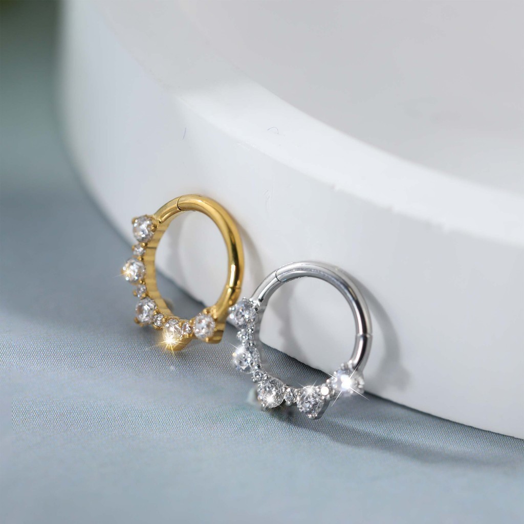 Piercing Helix Conch Argola Aço Cirúrgico Pvd Detalhe Zircônia Orelha Nariz Daith