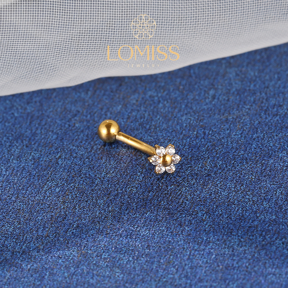 Piercing Helix Conch Flat Tragus Lóbulo Minibarbell Curvo Titânio Pvd Flor 6 Zircônias
