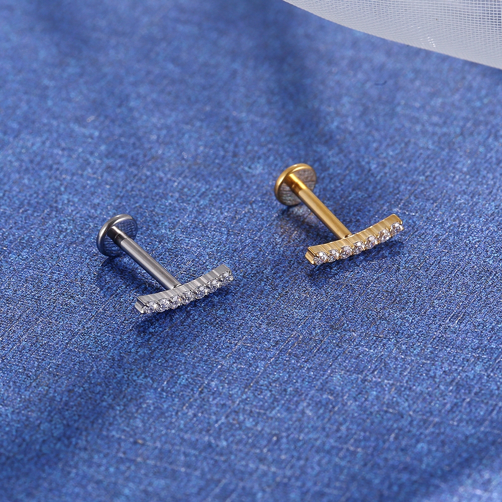 Piercing Helix Conch Labret Aço Cirúgico Pvd Barra Meio Curvo Mini Zircônias
