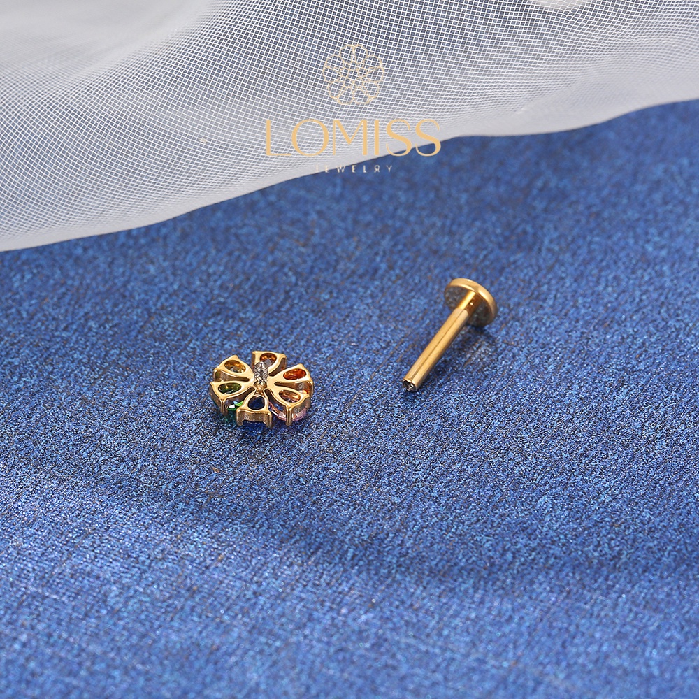 Piercing Helix Conch Labret Aço Cirúrgico pvd Flor Zircônia Colorida