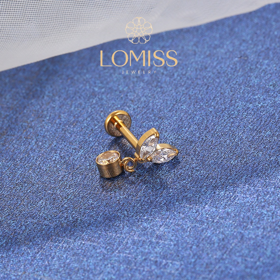 Piercing Helix Conch Labret Titânio 2 Petalas Com Pingente Zircônia《Lomiss semijoias》