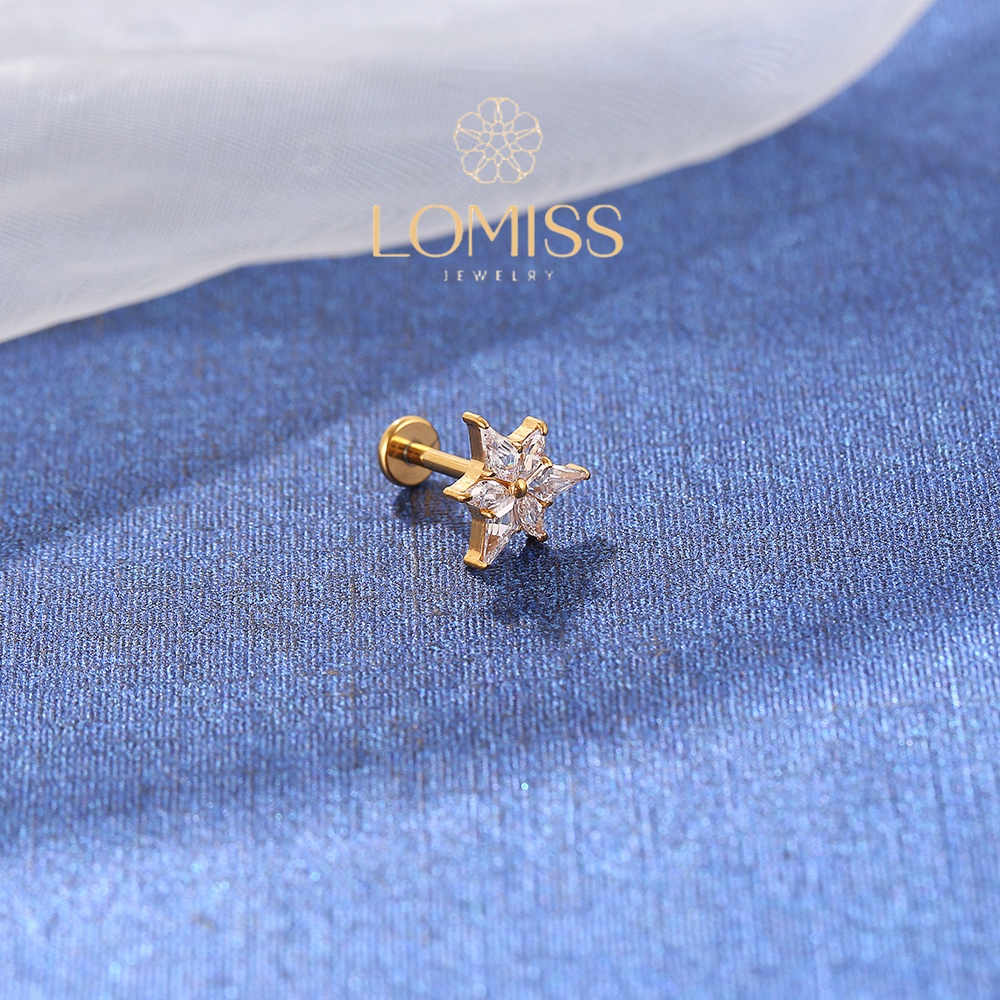 Piercing Helix Conch Labret Titânio Flor Zircônia Cravejada Lomiss piercing