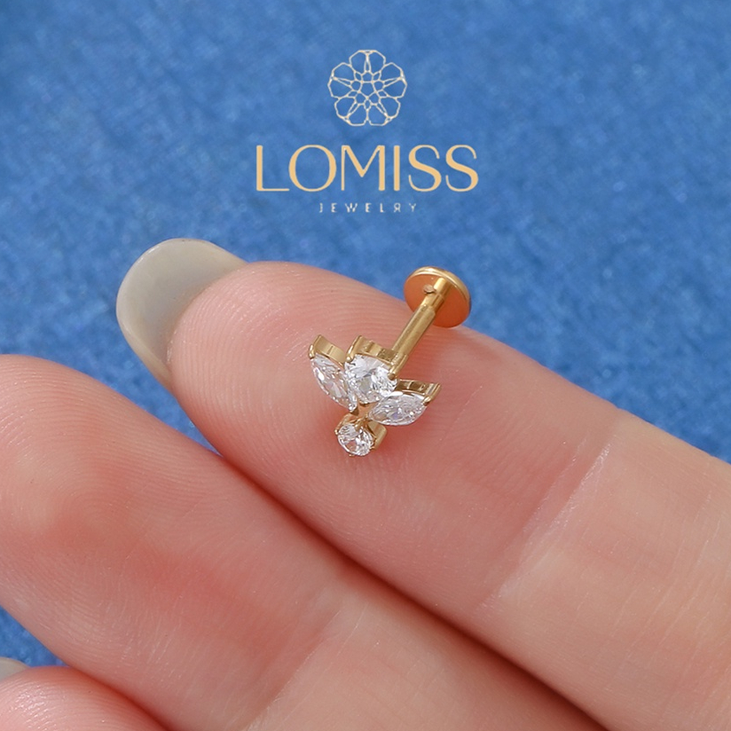 Piercing Helix Conch Labret Titânio Flor Zircônias《Lomiss piercing》