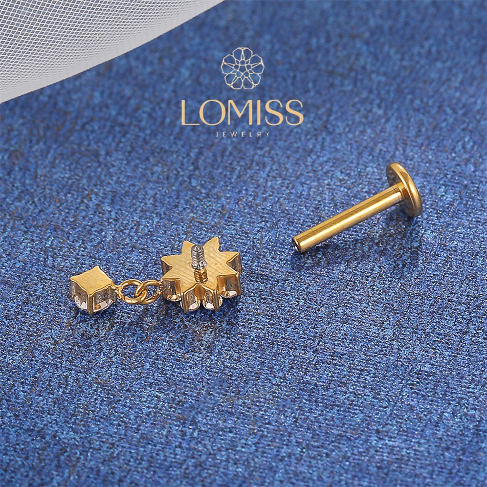 Piercing Helix Conch Labret Titânio G23 Pvd Flor Com Pingente Zircônia Cravejada《Lomiss piercing》