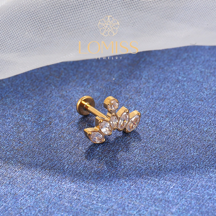 Piercing Helix Conch Labret Titânio PVD 6 Zircônia《Lomiss semijoias》