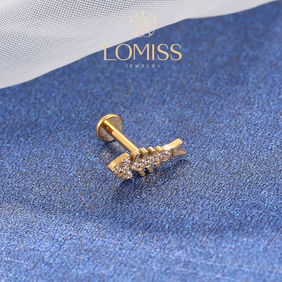 Piercing Helix Conch Labret Titânio pvd Espinha Peixe Zircônia《Lomiss semijoias》