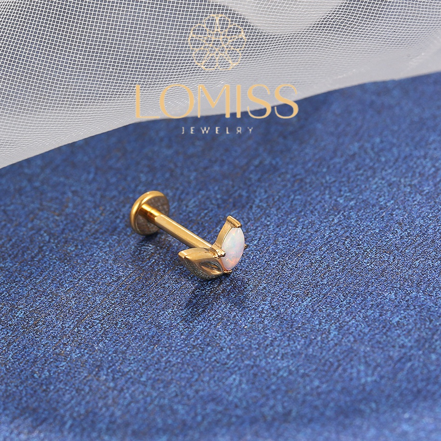 Piercing Helix Conch Labret Titânio PVD Flor de Opala《Lomiss semijoias》