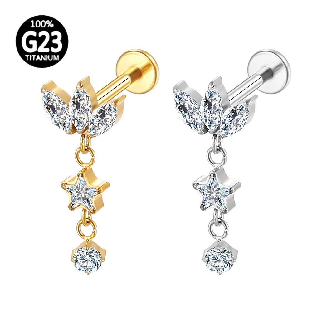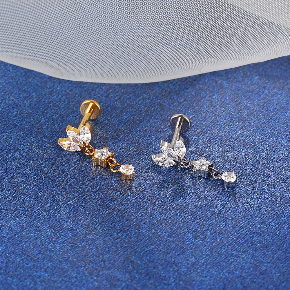 Piercing Helix Conch Labret Titânio Pvd Flor Zircônia Cravejada Com Pingente