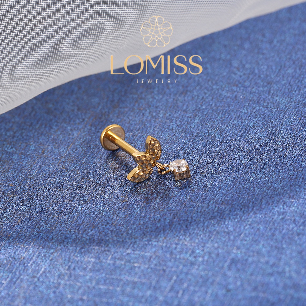Piercing Helix Conch Labret Titânio PVD Folhas com Pingente Zircônia《Lomiss semijoias》