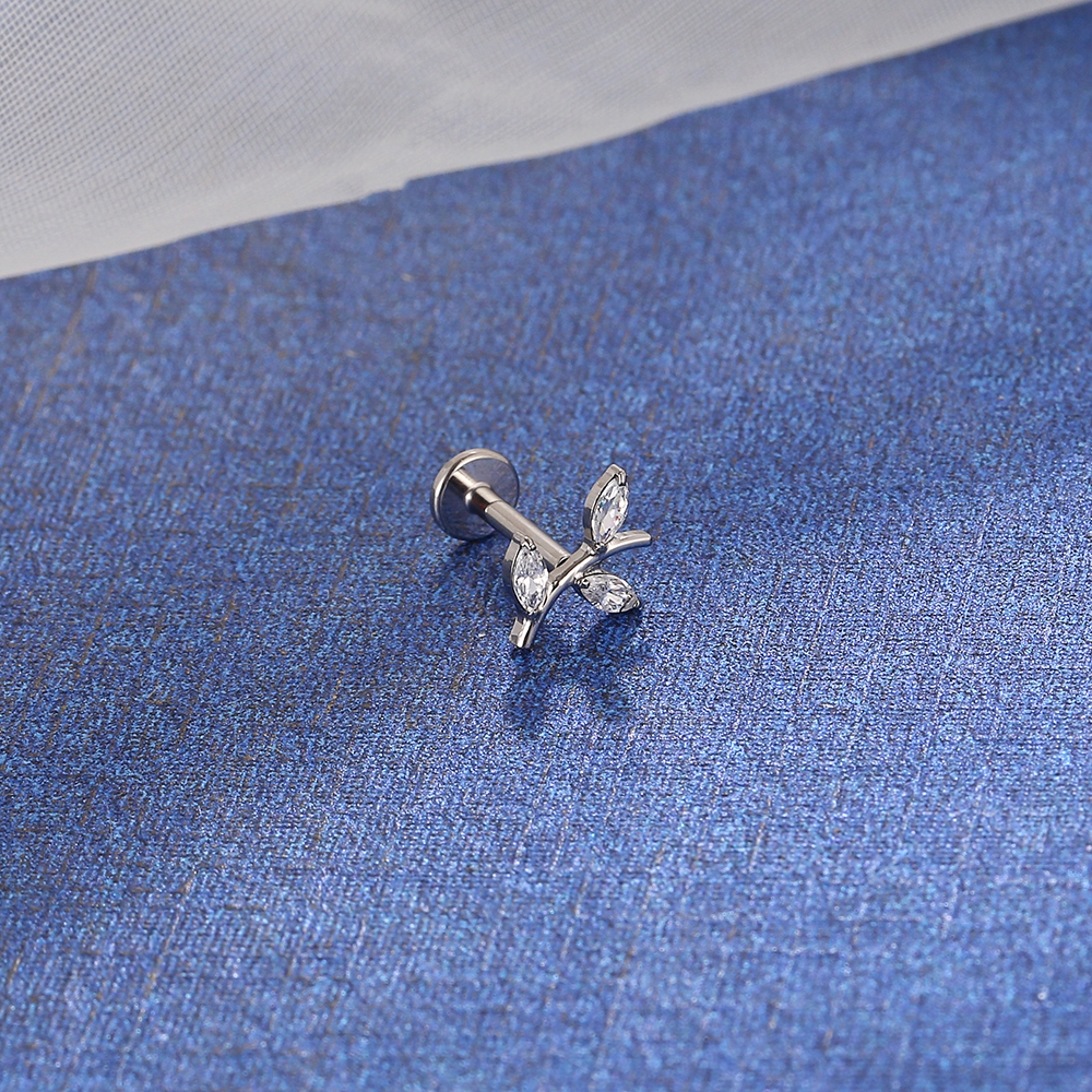 Piercing Helix Conch Labret Titânio Pvd Galho Zircônia Cravejada