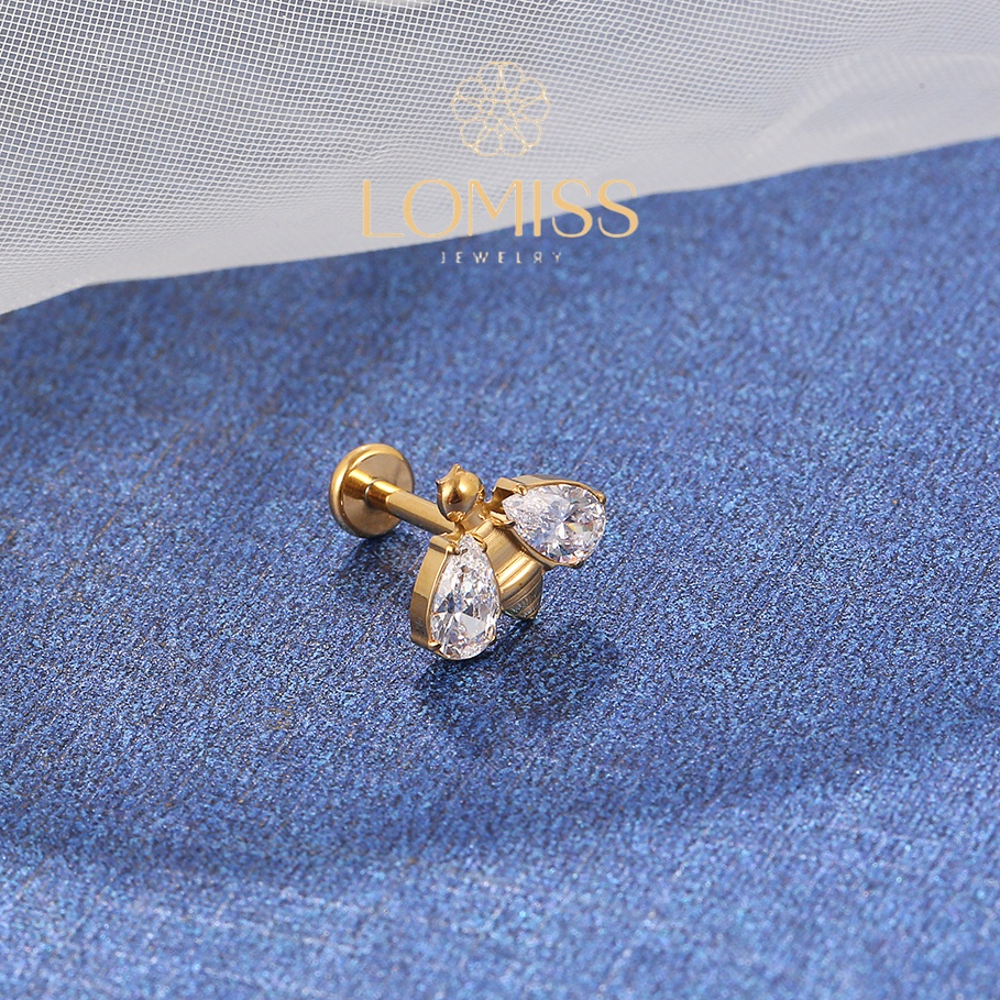 Piercing Helix Conch Labret Titânio PVD Zircônia Abelha 《Lomiss semijoias》