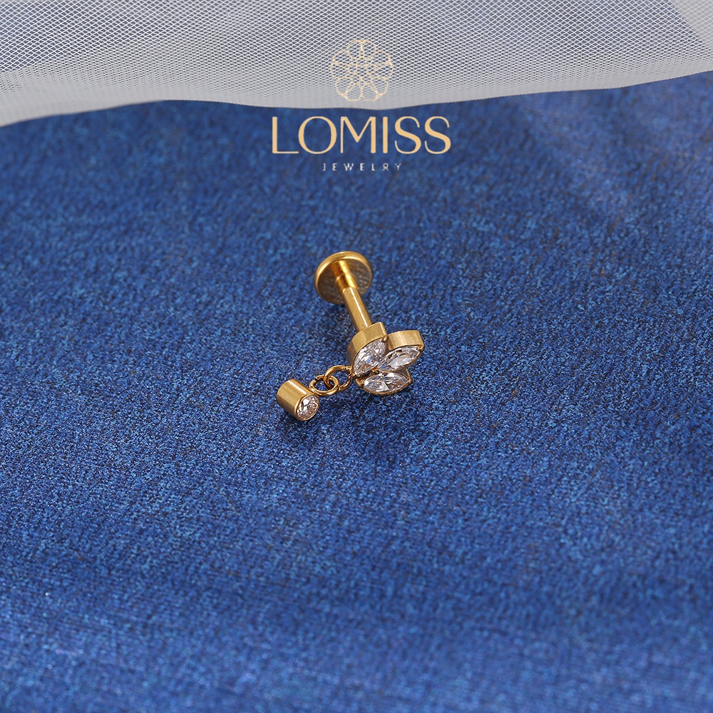 Piercing Helix Conch Labret Titânio Trio Com Pingente Zircônia《Lomiss semijoias》