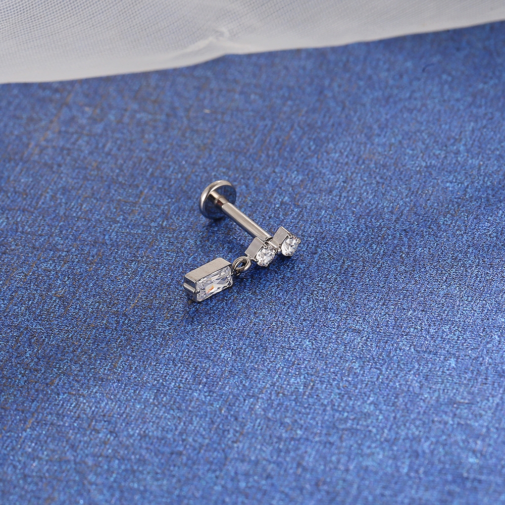 Piercing Helix Conch Tragus Labret Titânio Pvd Zircônia Cravejada Com Pingente Quadrado