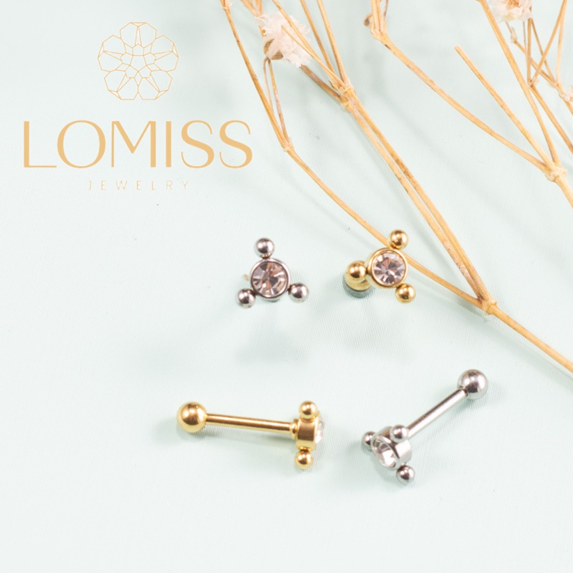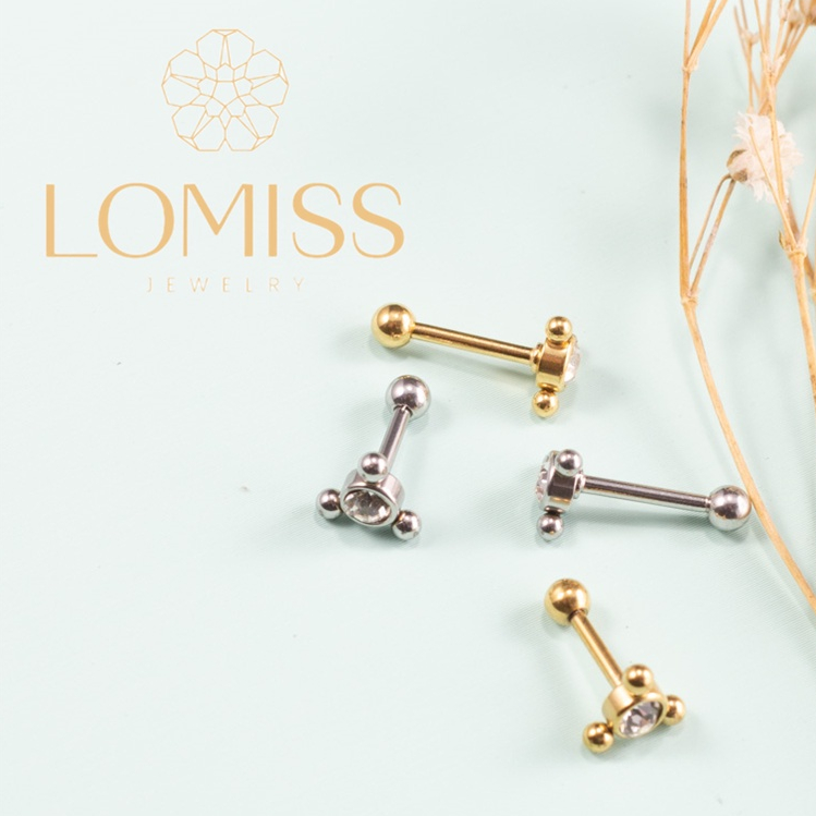 Piercing Helix Flat Conch Tragus Lóbulo Microbell Reto AÇo CirÚrgico 1 Pedra Lomiss piercing