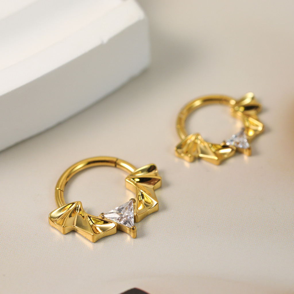 Piercing Helix Septo Rook Conch Argola Titânio Segmento Articulado Asas/Zircônia Cravejada