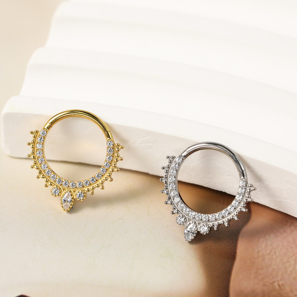 Piercing Helix Septril Rook Argola Titânio Segmento Articulado Indiano Com Zircônia Cravejada