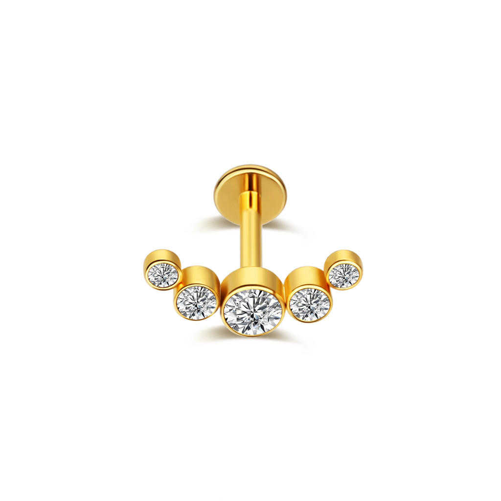 Piercing Helix Tragus Conch Aço Cirúrgico Boca-Medusa Labret Pvd Cluster 5 Zircônias Trágus