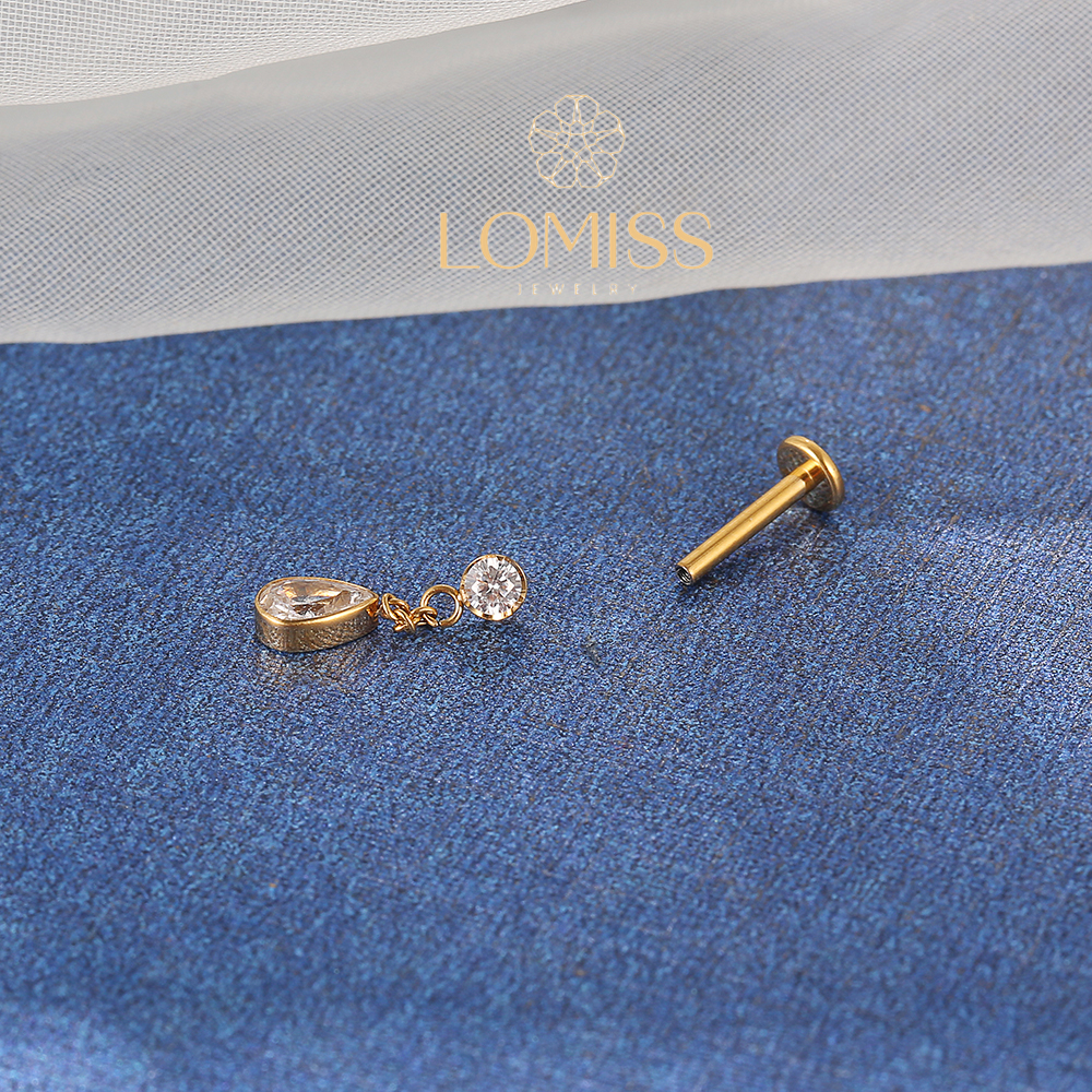 Piercing Helix Tragus Conch Boca-Medusa Labret Aço Cirúrgico Pvd Ponto De Luz/pingente Gota Zircônia
