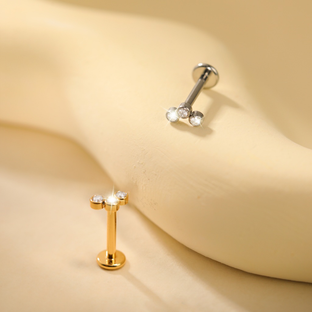 Piercing Helix Tragus Conch Boca-Medusa Labret Aço Cirúrgico Pvd Trio Zircônia