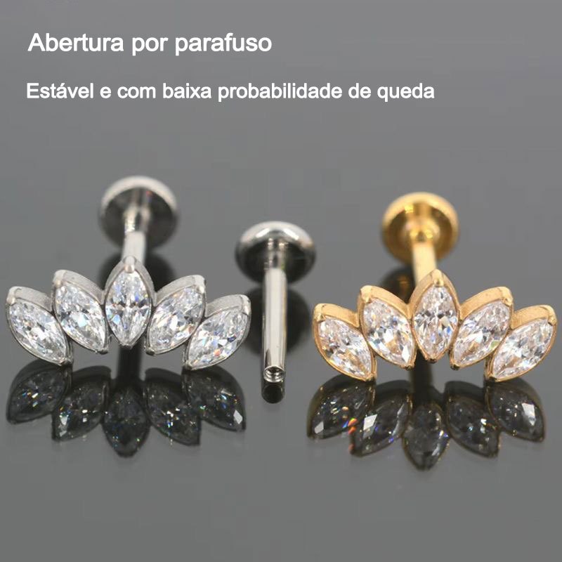 Piercing Helix Tragus Conch Labret 100% Titânio Cluster Zircônia Cravejada