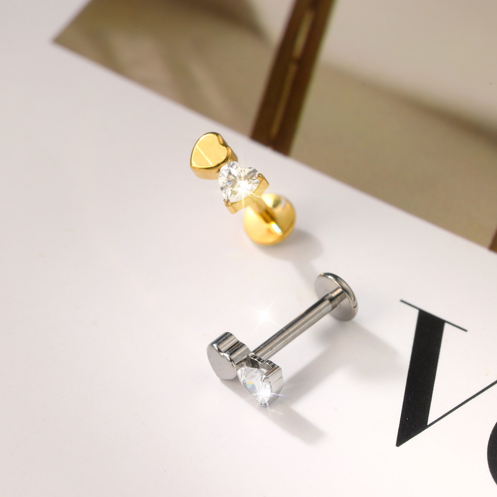 Piercing Helix Tragus Conch Labret Titânio Dois Corações Zircônia Cravejada