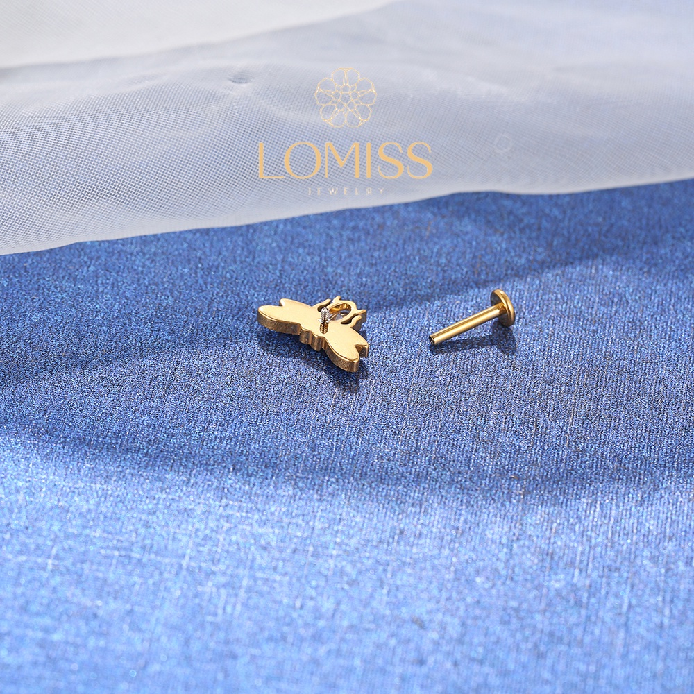 Piercing Helix Tragus Conch Labret Titânio G23 Pvd Abelha Zircônia Cravejada Lomiss piercing