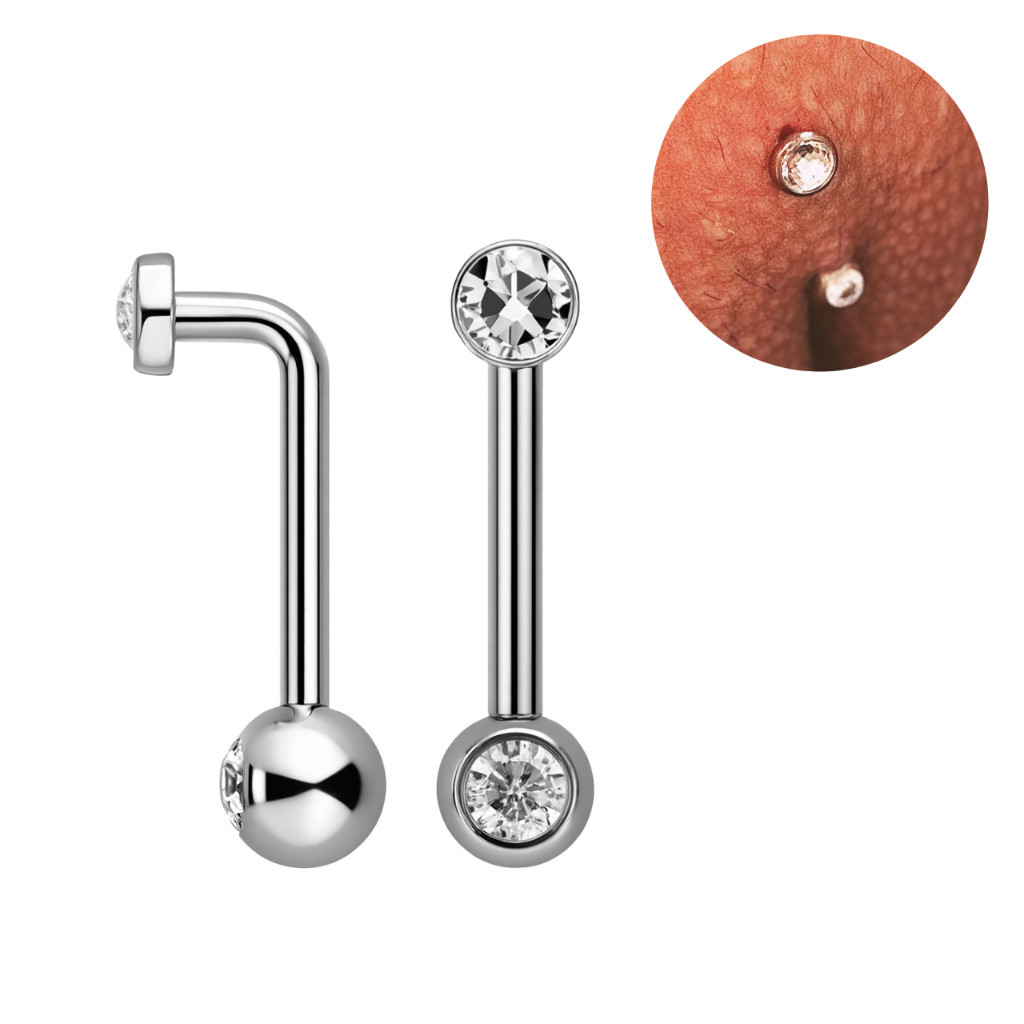 O piercing Christina é um tipo de piercing íntimo feminino que é perfurado verticalmente no monte de Vênus, na junção dos grandes lábios. Ele é chamado por esse nome porque foi dado à primeira pessoa a receber o procedimento, uma mulher chamada Christina, na década de 1990. Contém: 01 unidade Material: Titânio Sólido ASTM-F136 com zircônia Medidas 1.6mm (14G) comprimento 11mm - Bolinhas 5mm