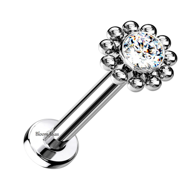 Piercing Labret 100% Titânio Com Zircônia Cluster Indiano Bolinhas