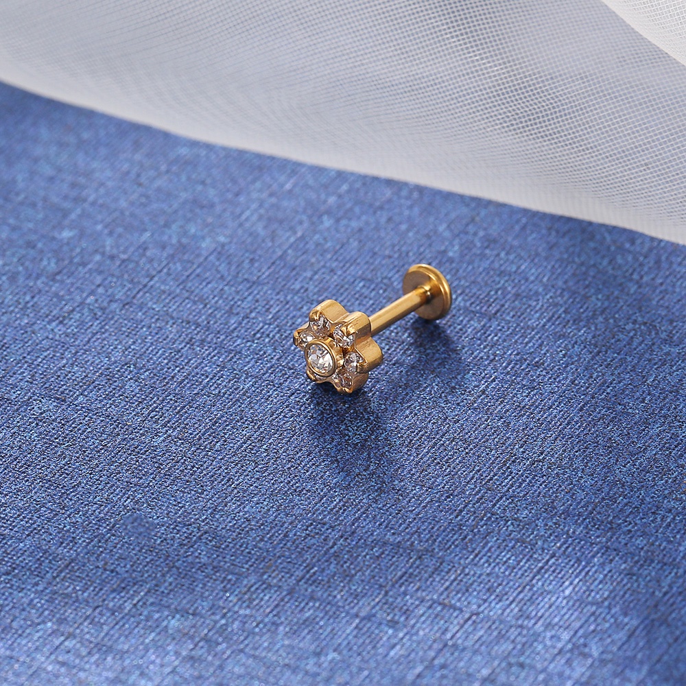 Piercing Labret Aço Cirúrgico Flor Zircônia | Helix, Tragus, Conch, Nariz, Boca-Medusa e Outros
