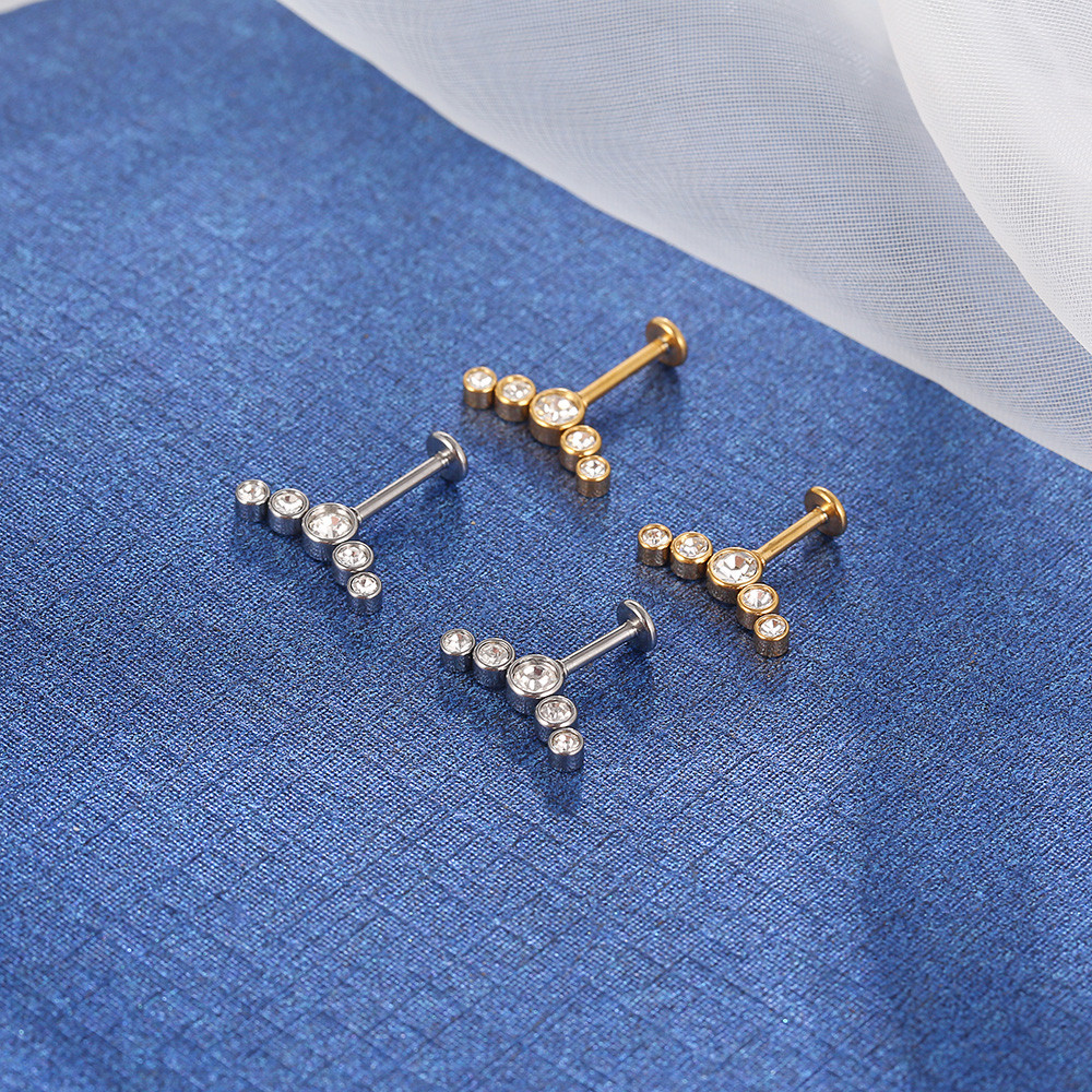 Piercing Labret Aço Cirúrgico Indiano 3 Strass | Helix, Tragus, Conch, Nariz, Boca-Medusa e Outros