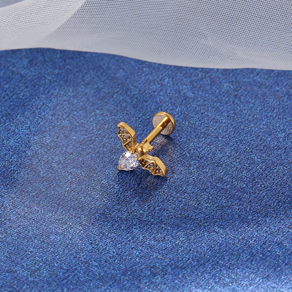 Piercing Labret Aço Cirúrgico Morcego Zircônia | Helix, Tragus, Conch, Nariz, Boca-Medusa e Outros