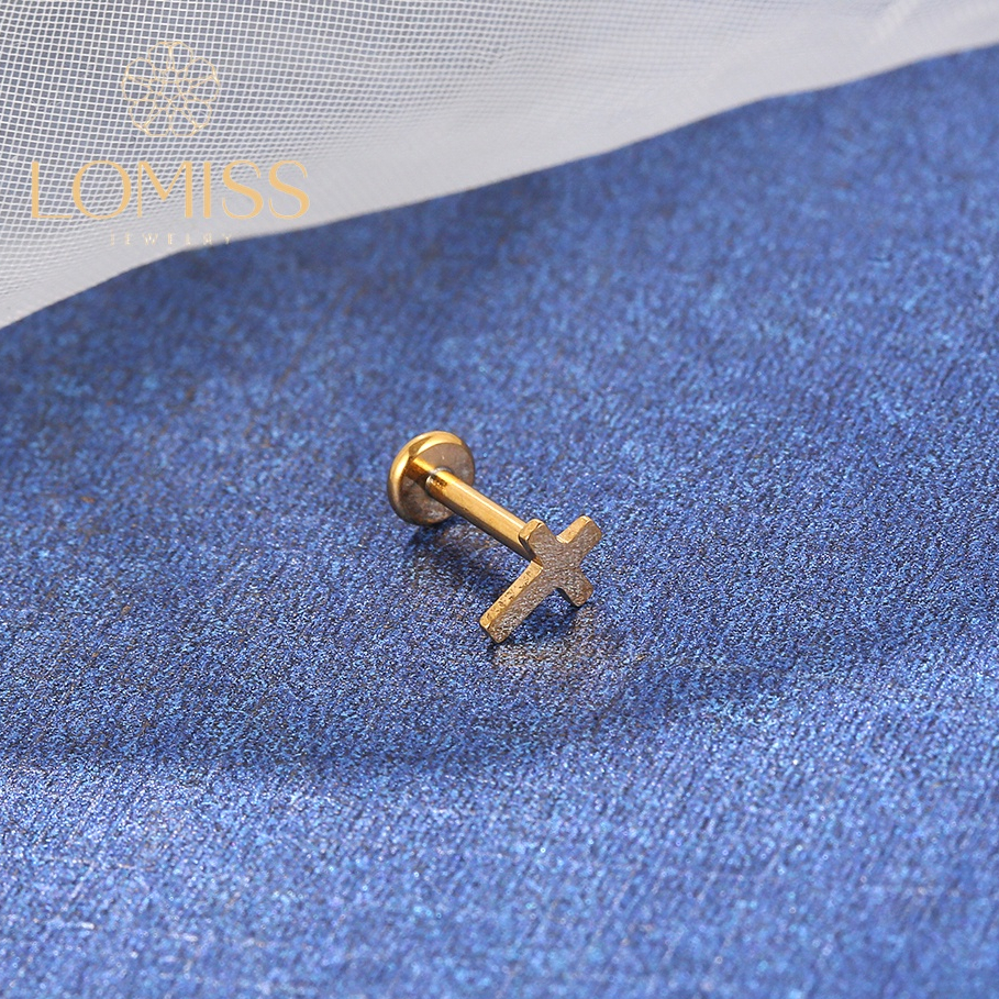 Piercing Labret Aço Cirúrgico PVD Cruz Helix Tragus Conch Nariz Boca Medusa