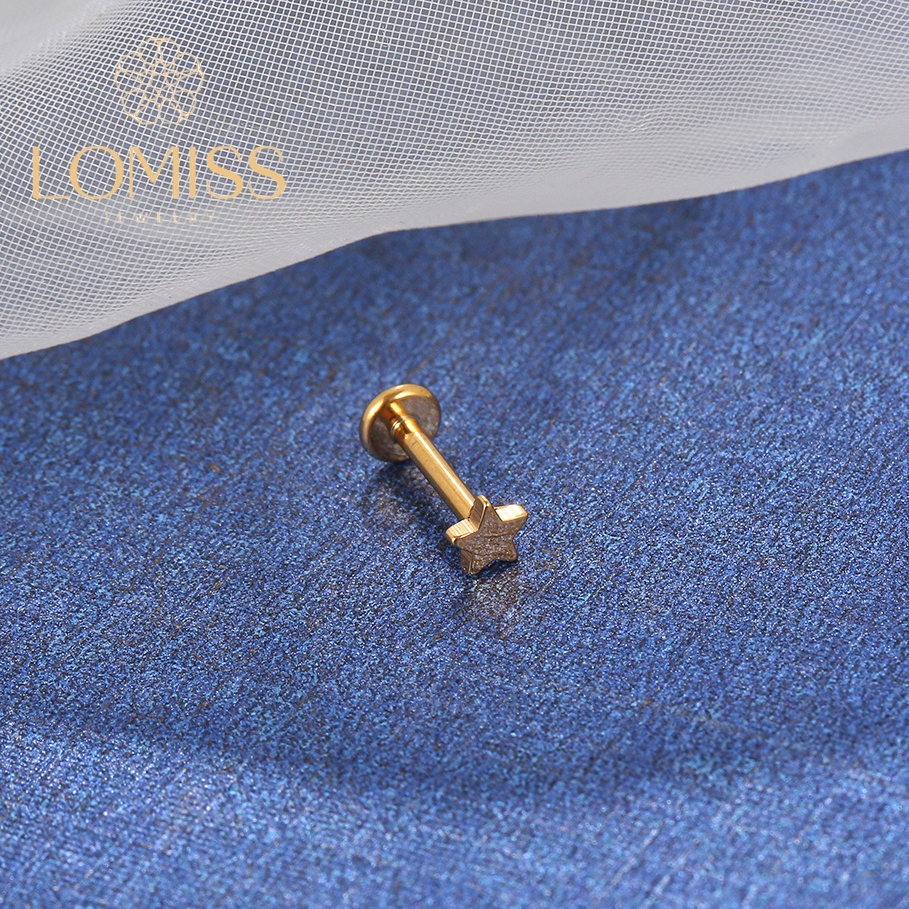 Piercing Labret Aço Cirúrgico PVD Estrela Brilhante《Lomiss semijoias》