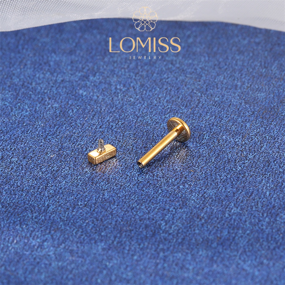 Piercing Labret banhado PVD GOLD 18k Rosca Interna TitÂnio G23 RetÂngulo《Lomiss piercing》