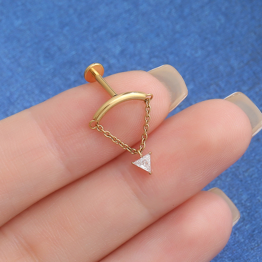 Piercing Labret Conch Aço Cirúrgico Pvd Curvo Com Corrente Zircônia Orelha