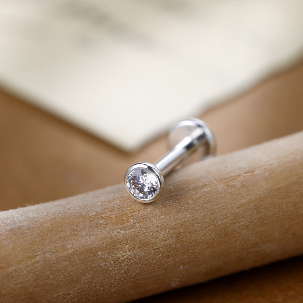 Piercing Labret Conch Prata 925 Ponto De Luz Grau de Implante Helix Tragus Boca Orelha