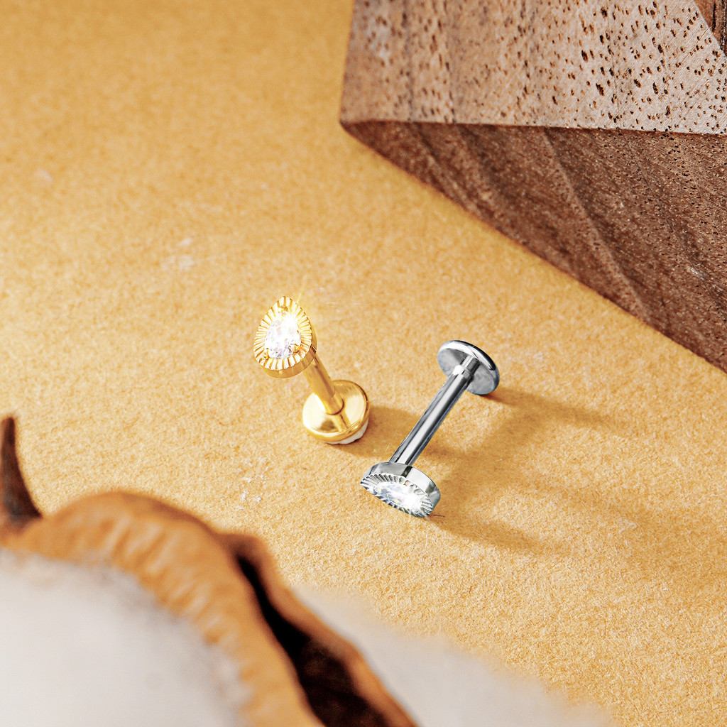 Piercing Labret e Orelha Titânio Gota Zircônia Cravejado | Para Helix Tragus Conch Nariz Piercing Boca Ponto De Luz