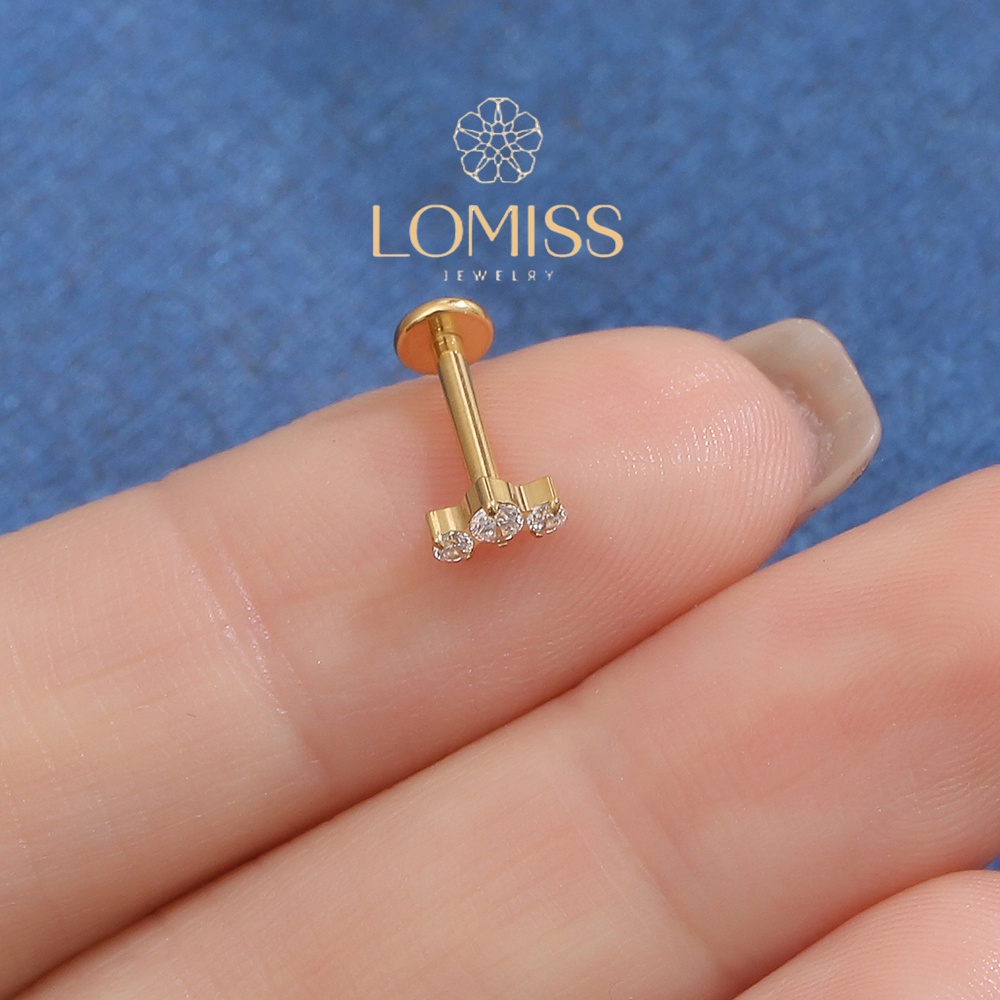 Piercing Labret Helix Tragus Conch Boca-Medusa Titânio G23 Pvd Trio Zircônia Lomiss piercing