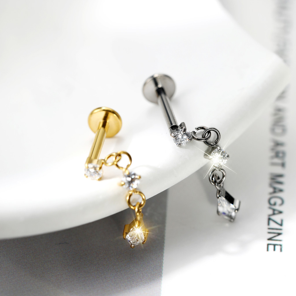 Piercing Labret Helix Tragus Conch Redondo Titânio Com Pingente Zircônia