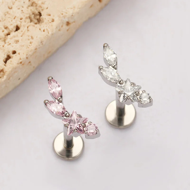 Piercing Labret Mini Cluster Titânio Pvd Zircônia Helix Conch Tragus Ponto de luz